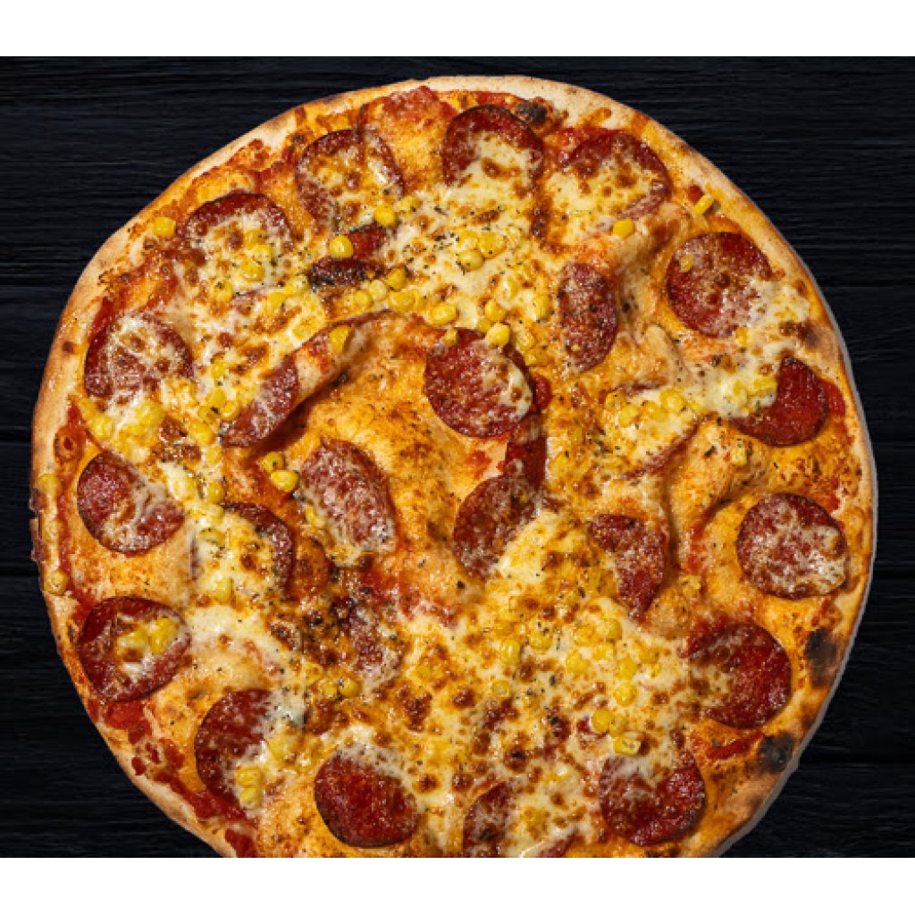 (Tomat, mozzarella, paprikáš, kukuřice, oregáno)