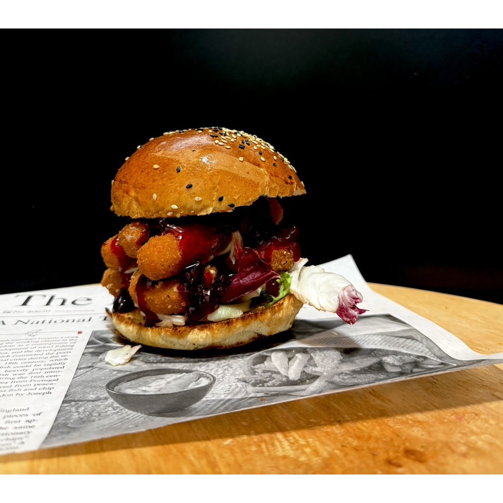 (Salát, bylinkový dresink, camembert kroužky 4x, mozzarella tyčinky 3x, brusinky)